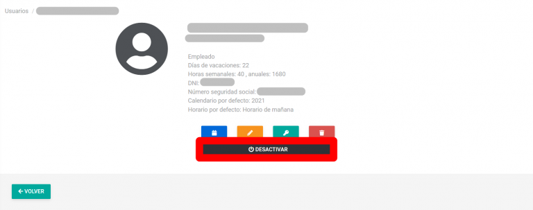 Haces clic en desactivar y ese usuario dejará de formar parte de la organización. Aun así, sus fichajes quedarán registrados para que los puedas tener siempre que lo necesites.
