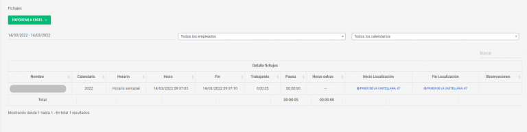 Cuando fichen, tú como administrador, verás los fichajes que han realizado desde la pestaña fichajes que tienes en la barra lateral izquierda. Fíjate, con la localización, la fecha y todos los detalles que necesitas.